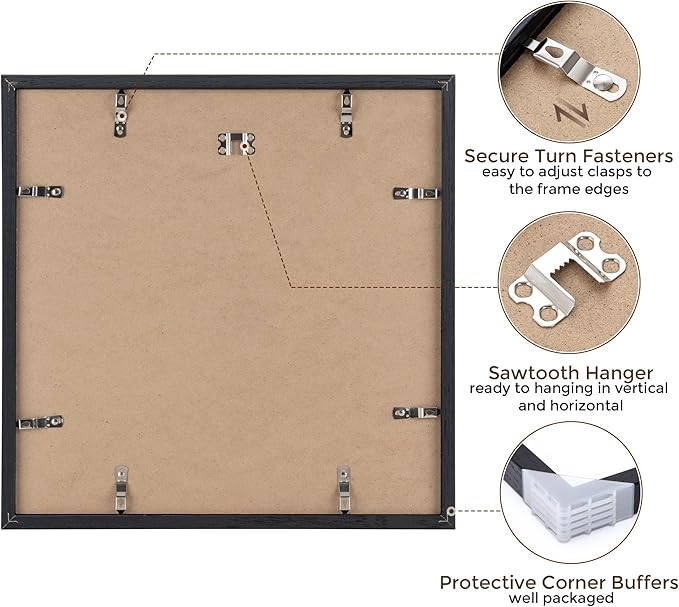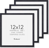 12x12 Picture Frames Set of 4, Black Wood Picture Frame 12 x 12, Oak Wood 12 by 12 Frames with Real Glass, Square 12 x 12 Photo Frames for Wall, 12x12 Frame with Mat for 8x8, Wall Gallery Frame Set