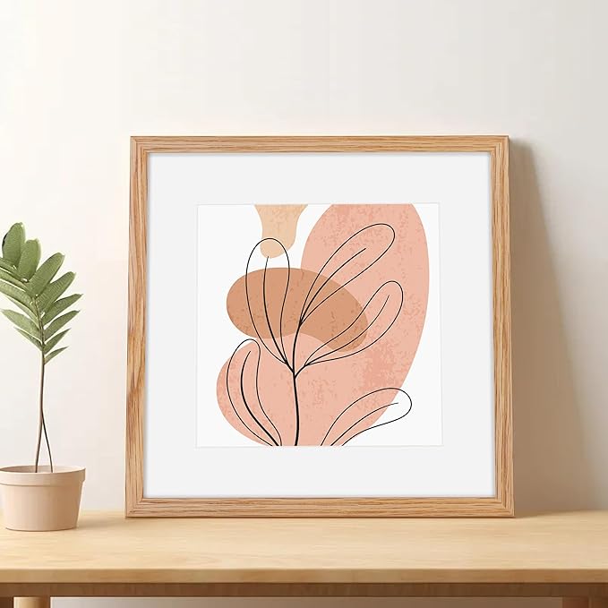 12x12 Picture Frame Set of 2, Oak Wood 12 x 12 Photo Frames for Wall, Square 12 by 12 Wood Frames with Real Glass, 12x12 Frame Matted to 8x8, 12 x 12 Wall Gallery Frame Set