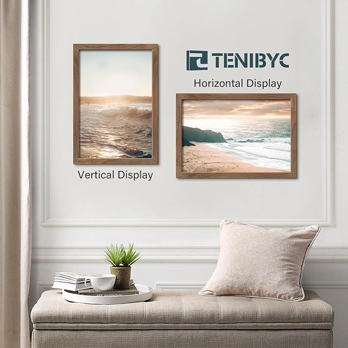 13x19 Walnut Picture Frame Set of 3 with HD Glass- Natural Brown, Solid Wood Poster Frame, Wall Hanging