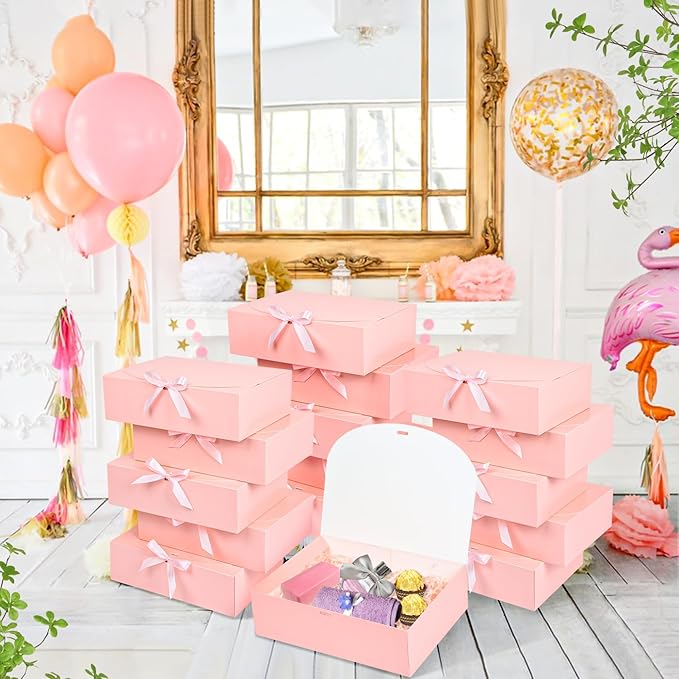 12Pack Pink Gift Boxes with Lids, 129.83.1 Inch Groomsmen Proposal Box, Luxury Pink Gift Box with Ribbon for Wedding, Birthday, Party, Christmas, Bridesmaid, Graduation