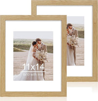 11x14 Picture Frame Set of 2, Made of Glass and Natural Oak Wooden Frame, Display 8x10 Pictures with Mat or 11 x 14 Posters without Mat for Wall Mounting, Gallery Photo Frames