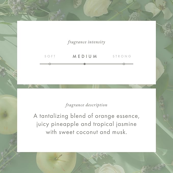 THE FRAGRANCE: Experience a refreshing bouquet of white tea harmoniously intertwined with delicate notes of light, fruity nuances and a whisper of subtle amber. Crisp and invigorating scent offers a clean aroma that revitalizes the senses.