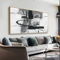 Modern Maximalist Abstract Wall Art - Black and White Irregular Graffiti Framed Canvas Decor for Living Room, Bedroom, Office - 20"x40"