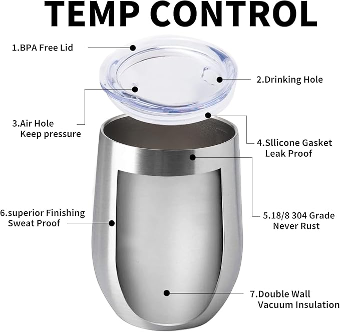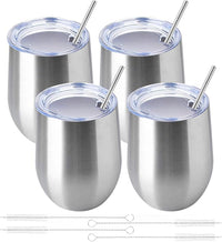 12oz/4 Pack Wine Tumbler Glasses with Lid Stemless Double Wall Vacuum Stainless Steel Travel Tumbler Keeping Cold & Hot for Wine,Coffee,Cocktails,Christmas Drinks-Family and Gifts(4 Pack-Sliver)