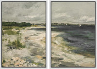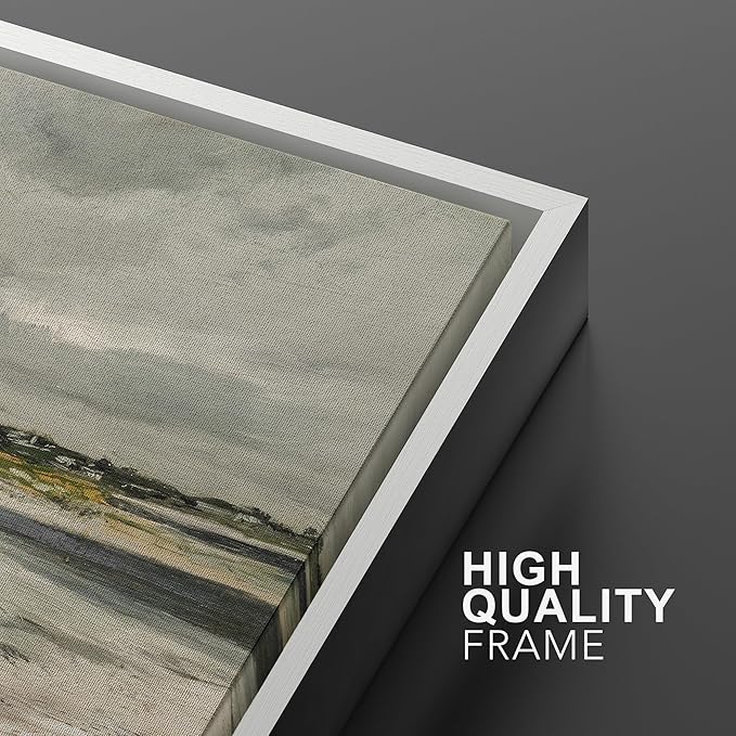 MUDECOR Framed Canvas Print Wall Art Coastal Shoreline with Lush Dunes Serene Beach Landscape Nature Wilderness Illustrations Realism Decorative for Living Room, Bedroom, Office - 16"x24"x2 White