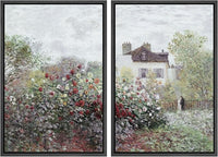 MUDECOR Framed Canvas Print Wall Art Blooming Garden and Cottage Romantic Floral Landscape Nature Wilderness Illustrations Realism Decorative Scenic for Living Room, Bedroom, Office - 24"x36"x2 Black Sale