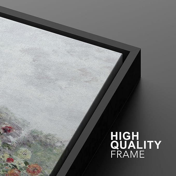 MUDECOR Framed Canvas Print Wall Art Blooming Garden and Cottage Romantic Floral Landscape Nature Wilderness Illustrations Realism Decorative Scenic for Living Room, Bedroom, Office - 24"x36"x2 Black