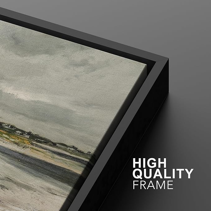 MUDECOR Framed Canvas Print Wall Art Coastal Shoreline with Lush Dunes Serene Beach Landscape Nature Wilderness Illustrations Realism Decorative for Living Room, Bedroom, Office - 16"x24"x2 Black