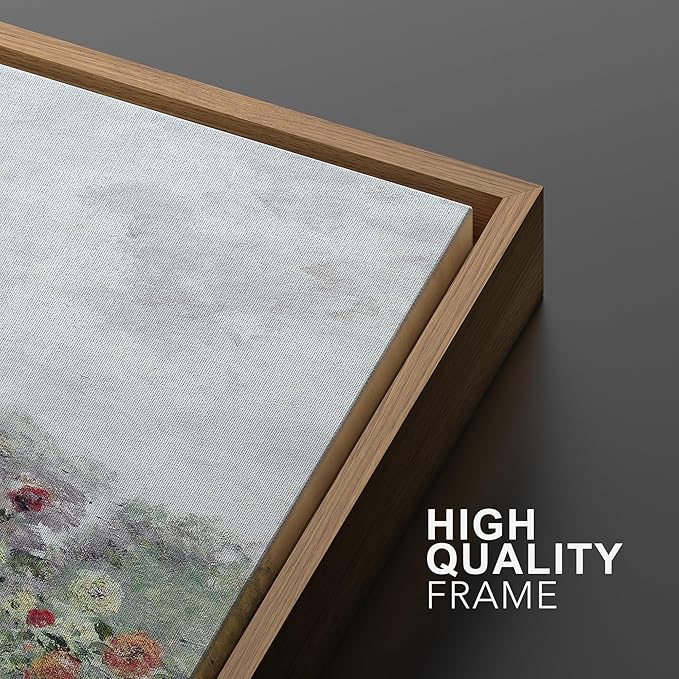 MUDECOR Framed Canvas Print Wall Art Blooming Garden and Cottage Romantic Floral Landscape Nature Wilderness Illustrations Realism Decorative for Living Room, Bedroom, Office - 24"x36"x2 Natural