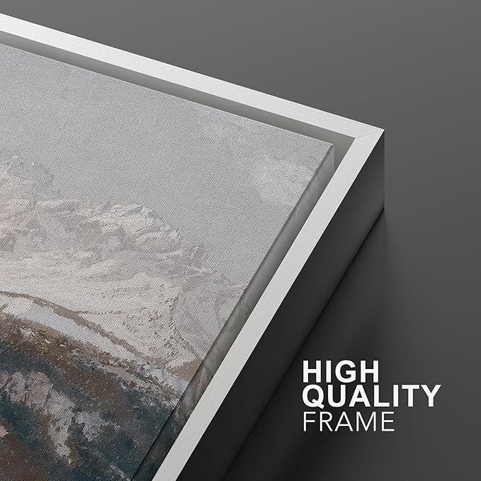MUDECOR Framed Canvas Print Wall Art Alpine Meadow and Mountain Range Rustic Cabin Nature Nature Wilderness Illustrations Realism Decorative Scenic for Living Room, Bedroom, Office - 24"x36"x2 White