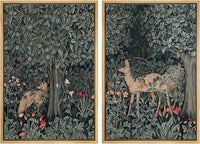 MUDECOR Framed Canvas Print Wall Art Enchanting Forest Wildlife Prints Deer & Fox in Woodland Nature Wilderness Illustrations Realism Decorative for Living Room, Bedroom, Office - 24"x36"x2 Natural