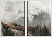 MUDECOR Framed Canvas Print Wall Art Majestic Snow-Capped Mountains Alpine Wilderness Nature Wilderness Illustrations Realism Decorative Scenic for Living Room, Bedroom, Office - 24"x36"x2 White