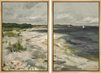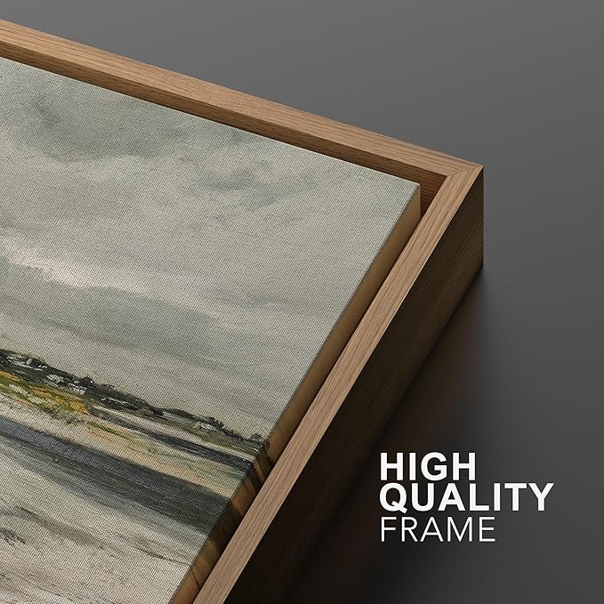 MUDECOR Framed Canvas Print Wall Art Coastal Shoreline with Lush Dunes Serene Beach Landscape Nature Wilderness Illustrations Realism Decorative for Living Room, Bedroom, Office - 24"x36"x2 Natural