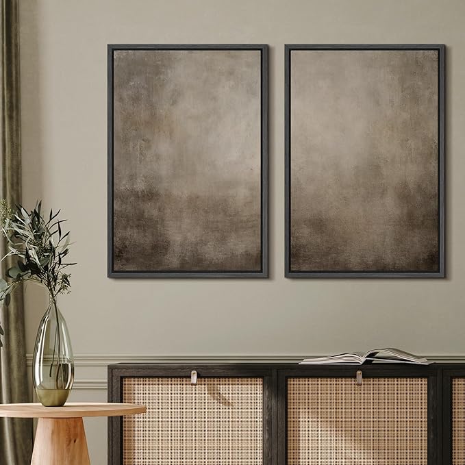 MUDECOR Framed Canvas Print Wall Art Monochromatic Gradient Abstract Minimalist Gray Illustrations Modern Art Decorative Bohemian Colorful Chic for Living Room, Bedroom, Office - 16"x24"x2 Black