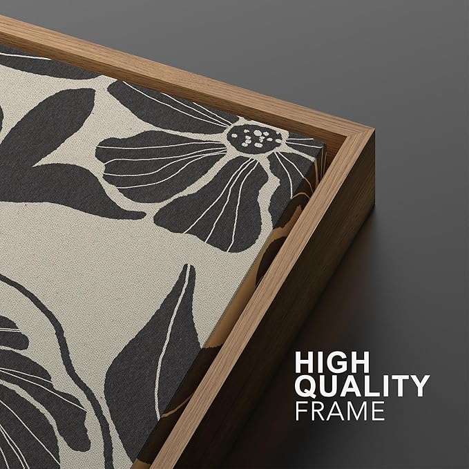 MUDECOR Framed Canvas Print Wall Art Monochrome Floral Botanical Black and White Illustrations Modern Art Decorative Bohemian Colorful Chic for Living Room, Bedroom, Office - 24"x36"x2 Natural