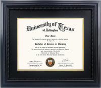 11x14 Diploma Degree Frame with Mat or Display 15x18 Certificates without Mat,Solid Wood,Black Finish with Intricate Black Rope Detail,UV Protection Acrylic