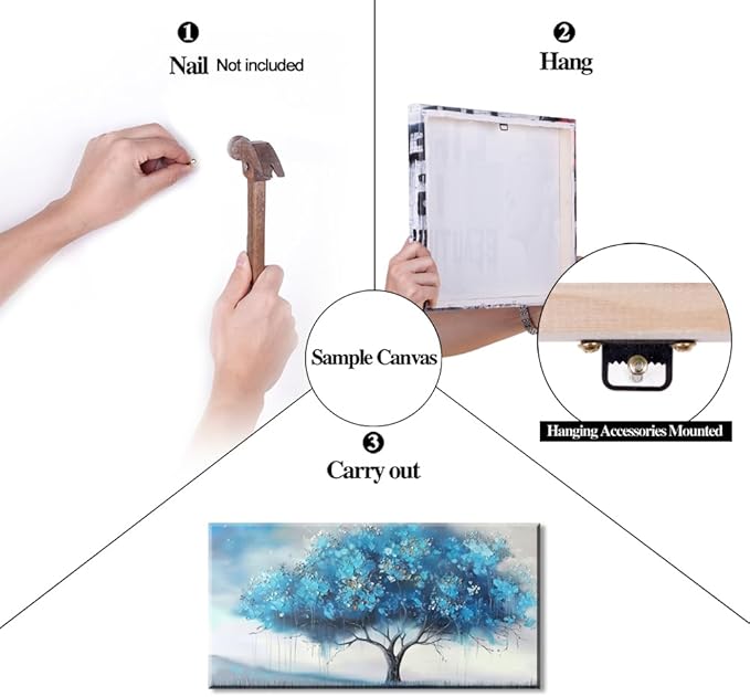 Blue Tree and White Petals Flowers Plants Wall Art Decor Artwork for Bedroom (30x60 Inches)