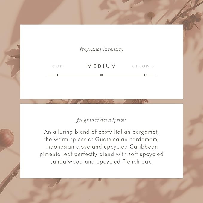 ECO ALLURE: An alluring blend of zesty Italian bergamot, the warm spices of Guatemalan cardamom, Indonesian clove and upcycled Caribbean pimento leaf perfectly blend with soft upcycled sandalwood and upcycled French oak.