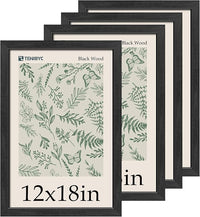 12x18 Frame Set of 4, Textured Black Wood & HD Tempered Glass, 12x18 Poster Picture Frame, Vertical & Horizontal Wall Hanging