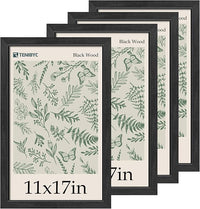 11x17 Picture Frame 4 Pack, Black Wood Poster Frame with HD Tempered Glass, Elegant Wood Grain, Wall Hanging