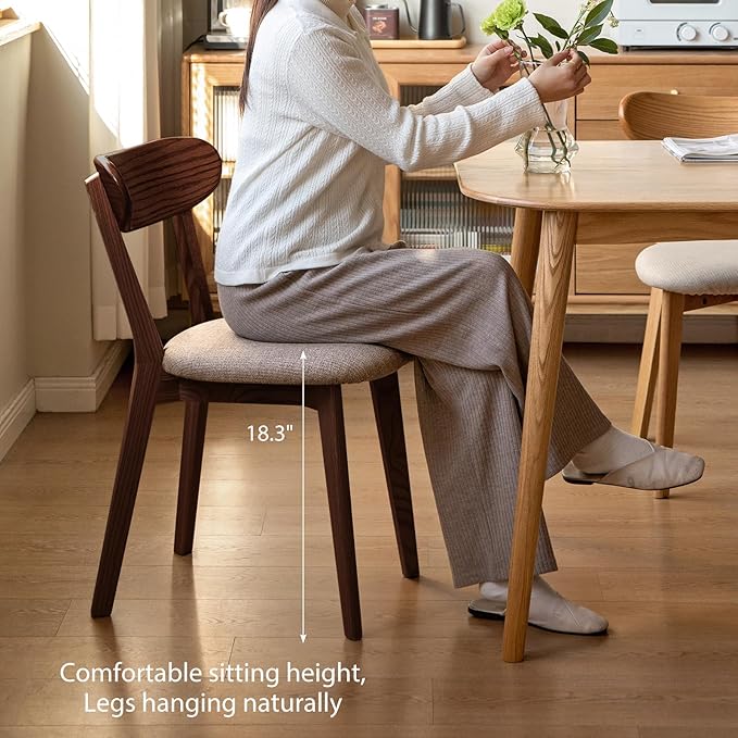 100% Solid Oak Wood Dining Room Chairs - Practical Kitchen Chairs - Wood Chair for Dining Room, Kitchen (2, Walnut with Grey Cushion)