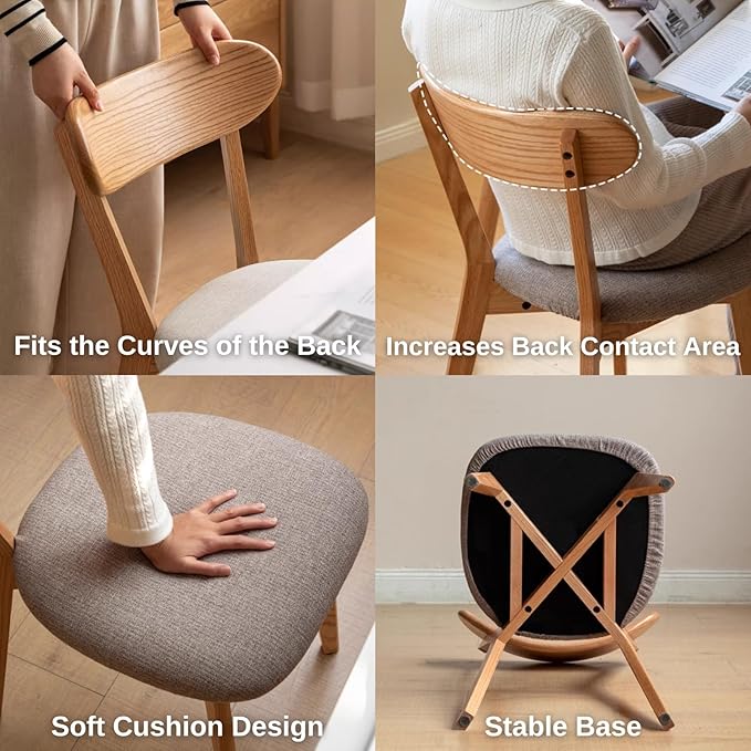 100% Solid Oak Wood Dining Room Chairs - Practical Kitchen Chairs - Wood Chair for Dining Room, Kitchen (4, Natural with White Cushion)