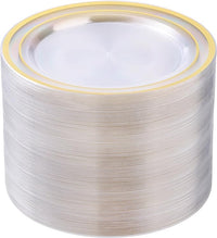 100PCS Clear Plastic Plates for Party, 10.25 Inch Heavy Duty Dinner Plates with Gold Rim, Disposable Plates for Wedding and Birthday