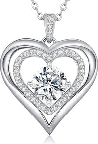 Moissanite Heart Pendant Necklaces for Women, 925 Sterling Silver Gold Plating Lab-Created Gem Necklace Engraved with 'I LOVE YOU', Ideal Anniversary Birthday Christmas Valentine Engagements Mothers Day Jewelry Gifts for Mom Wife Girlfriend Daughter Her