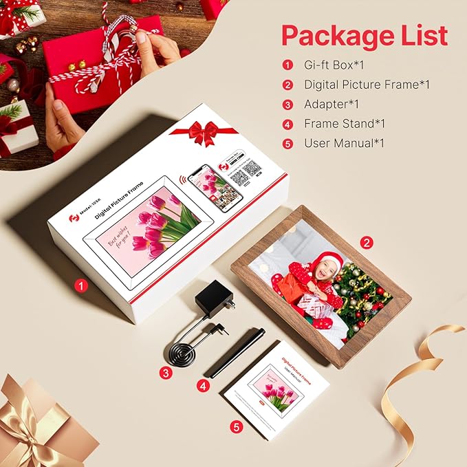 Frameo 10.1" Digital Picture Frame, Smart WiFi Digital Photo Frame with 1280x800 HD IPS Touch Screen 32GB Memory Auto-Rotate Wall Mounted, Share Photos/Videos from Phone Anywhere(Brown Wood)