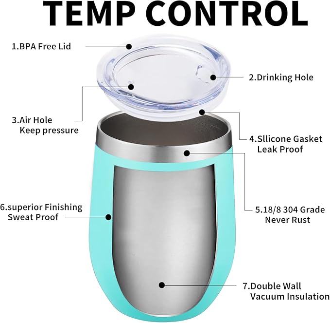 12oz/4 Pack Wine Tumbler Glasses with Lid Stemless Double Wall Vacuum Stainless Steel Travel Tumbler Keeping Cold & Hot for Wine,Coffee,Cocktails,Christmas Drinks-Family and Gifts(Multi color-5)