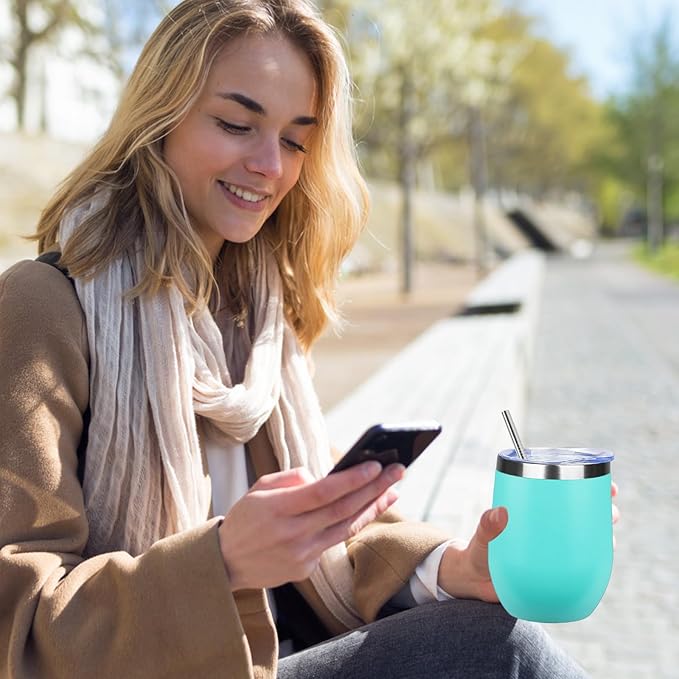 12oz/4 Pack Wine Tumbler Glasses with Lid Stemless Double Wall Vacuum Stainless Steel Travel Tumbler Keeping Cold & Hot for Wine,Coffee,Cocktails,Christmas Drinks-Family and Gifts(Multi color-5) Sale