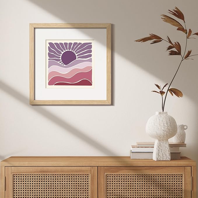 12x12 Frame with Mat for 8x8, Natural Solid Oak Wood Picture Frame with Tempered Glass for Wall Mounting(Single,Oak)
