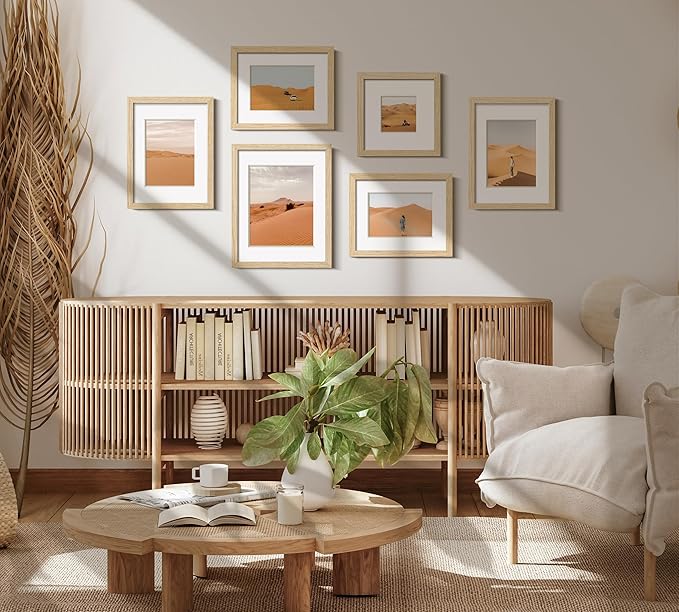12x16 Frame with Mat for 8.5x11 Set of 3, Natural Solid Oak Wood 12x16 Picture Frame, Lightweight for Wall Mounting(3 Pack,Oak)