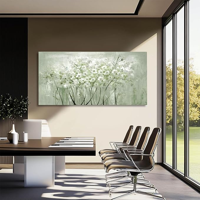 MLART99 Modern Artwork Wall Decor White Flowers Picture Art 24"x48" Plant Wall Art Decorations for Living Room Office