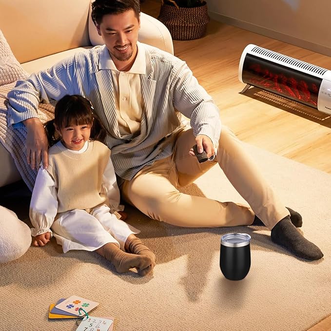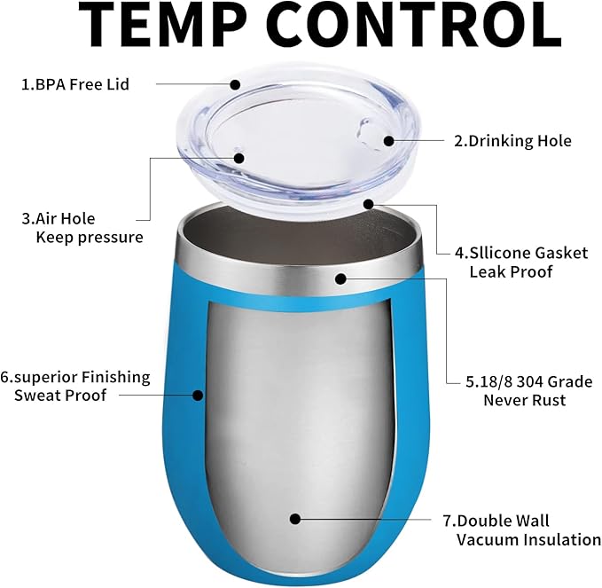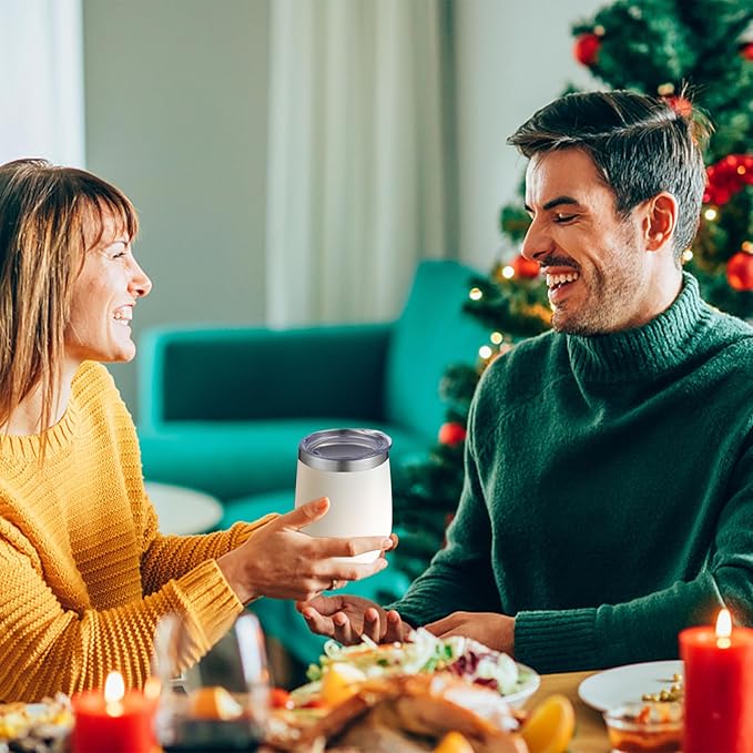 12oz/6 Pack Wine Tumbler Glasses with Lid Stemless Double Wall Vacuum Stainless Steel Travel Tumbler Keeping Cold & Hot for Wine,Coffee,Cocktails,Christmas Drinks-Family and Gifts (Multi color-couple)