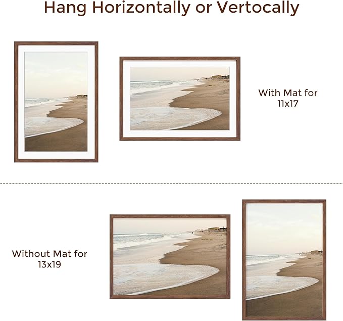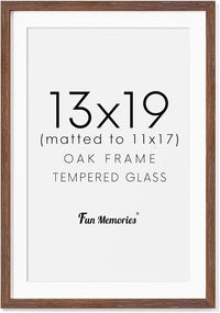 13x19 Picture Frame, Solid Oak Wood Frame 13 x 19 Frame for Wall, 13"x19" Photo Frame with Tempered Real Glass, 13x19 Picture Frame Matted to 11x17, Rustic Wooden 13x19 Poster Frame, Walnut Color