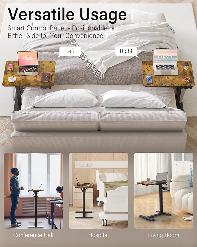 Mobile Standing Desk with Wheels - Electric Height Adjustable Small Movable Laptop Desk, Portable Rolling Computer Sit Stand Side Table for Home Office, Sofa&Bedside Use (23.6",Rustic Brown)