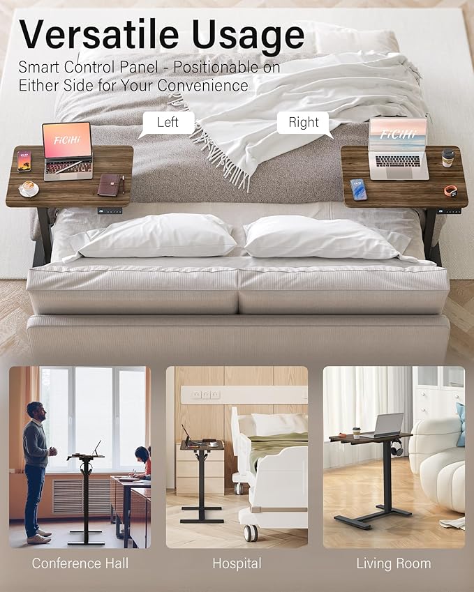 Mobile Standing Desk with Wheels - Electric Height Adjustable Small Movable Laptop Desk, Portable Rolling Computer Workstation Sit Stand Table for Home Office, Sofa & Bedside Use(23.6", Walnut)
