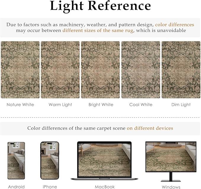 10x14 Green Vintage Area Rug for Living Room Bedroom Large Traditional Low Pile Soft Carpet Non-Slip Thin Retro Distressed Accent Washable Throw Rug for Dining Room Office Kitchen Indoor