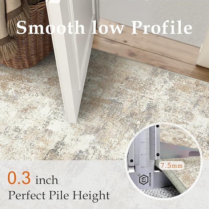 10x14 Washable Area Rug Gold Grey Neutral Abstract Living Room Bedroom Large Throw Rug Non Slip Soft Low Pile Indoor Floor Carpet for Dining Room Kitchen Office Entryway