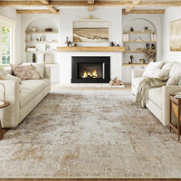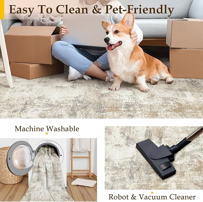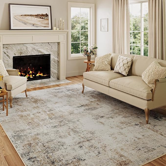 10x12 Washable Area Rug Gold Grey Neutral Abstract Living Room Bedroom Large Throw Rug Non Slip Soft Low Pile Indoor Floor Carpet for Dining Room Kitchen Office Entryway
