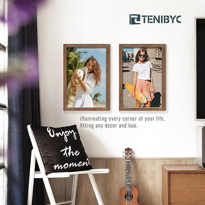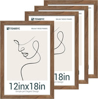 12x18 Frame Set of 4, Brown Grain, Walnut Wood & HD Tempered Glass, 12x18 Poster Picture Frame, Vertical & Horizontal Wall Hanging