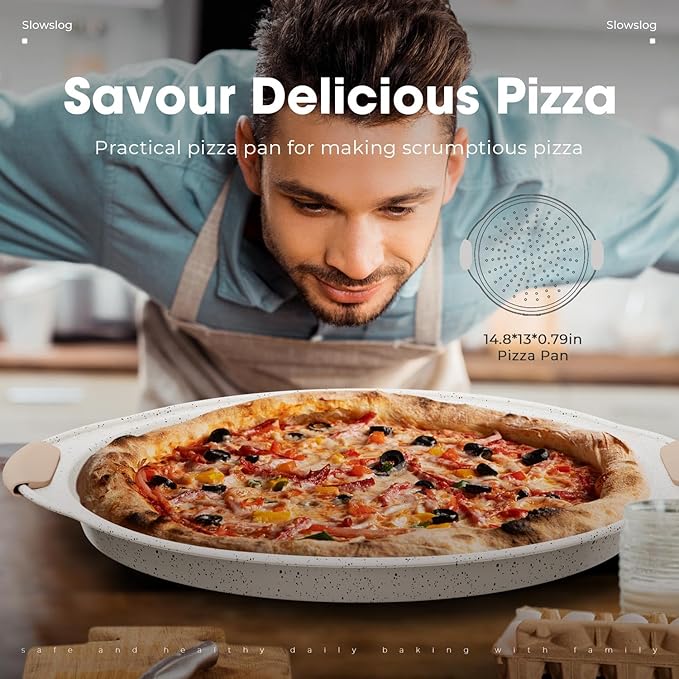 10-Piece Baking Pans Set Nonstick, Stackable Bakeware, Toxin-Free Baking Pans Set with Silicone Handles, Includes Cookie Sheets, Cake Pan, Loaf Pan, Pizza Pan, Muffin Pan, White&Khaki
