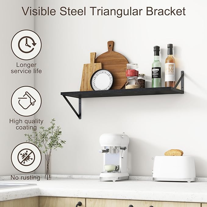 10 Inch Deep Floating Shelves, Black Floating Shelves 30 Inch Long, Rustic Wood Wall Shelves 30"W x 10"D, Deep Floating Shelf with Bracket, Wide Storage Shelves for Books, Living Room, Bathroom