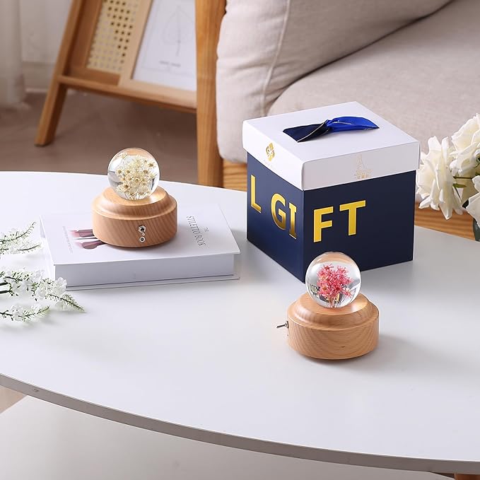 1 Pieces 6cm Diameter Yellow Glass Little Daisy Ball Night Light Music Box Wood You are My Sunshine Mechanism Flower Decor Romantic Birthday Valentine's Day for Girlfriend Her Women