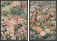 MUDECOR Framed Canvas Print Wall Art Impressionist Floral Garden Vintage Botanical Illustrations Modern Art Decorative Bohemian Colorful Chic for Living Room, Bedroom, Office - 16"x24"x2 Black