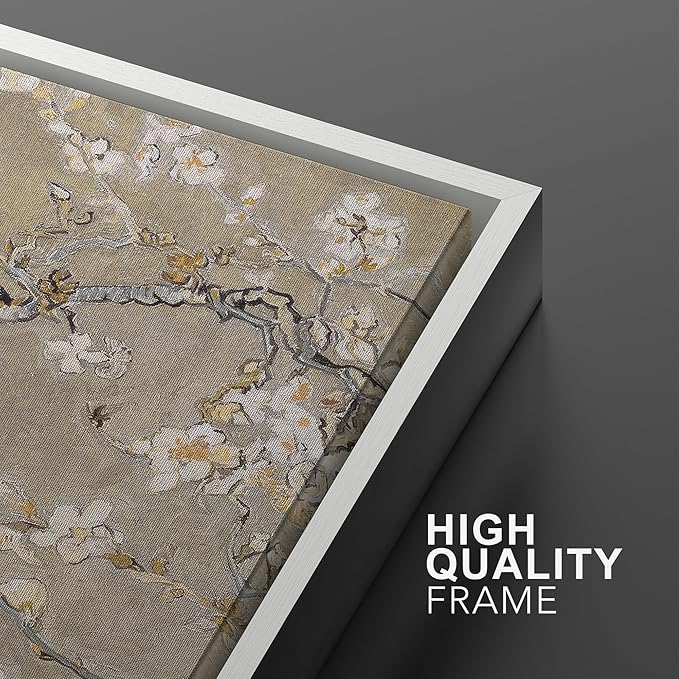 MUDECOR Framed Canvas Print Wall Art Blossoming Branches Vintage Floral Illustrations Realism Decorative for Living Room, Bedroom, Office - 24"x36"x3 White