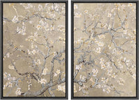 MUDECOR Framed Canvas Print Wall Art Blossoming Almond Tree Elegant Floral Illustrations Modern Art Decorative Bohemian Calm/Zen for Living Room, Bedroom, Office - 24"x36"x2 Black Sale