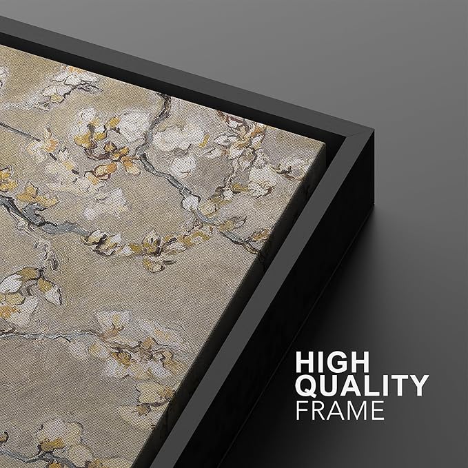 MUDECOR Framed Canvas Print Wall Art Blossoming Almond Tree Elegant Floral Illustrations Modern Art Decorative Bohemian Calm/Zen for Living Room, Bedroom, Office - 16"x24"x2 Black