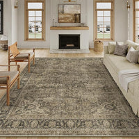 10x12 Brown Vintage Area Rug for Living Room Bedroom Large Traditional Low Pile Soft Carpet Non-Slip Thin Retro Distressed Accent Washable Throw Rug for Dining Room Office Kitchen Indoor